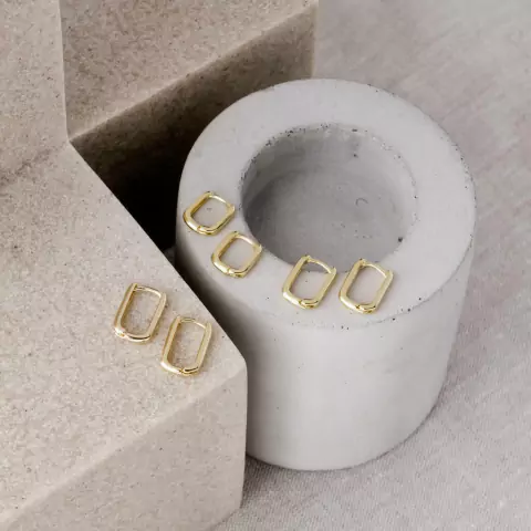 Trio Argolinhas Retangulares Lisas - Banho Dourado
